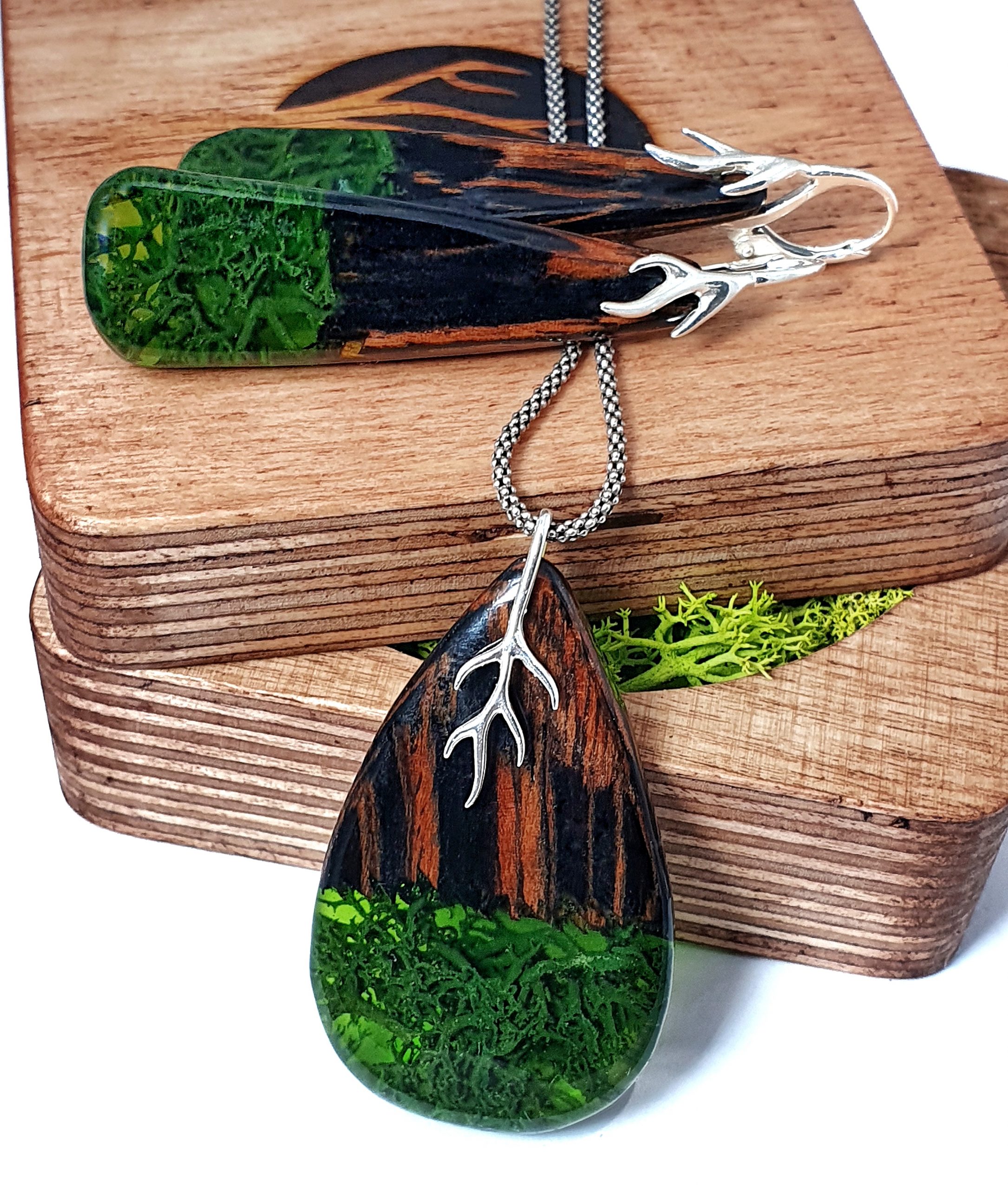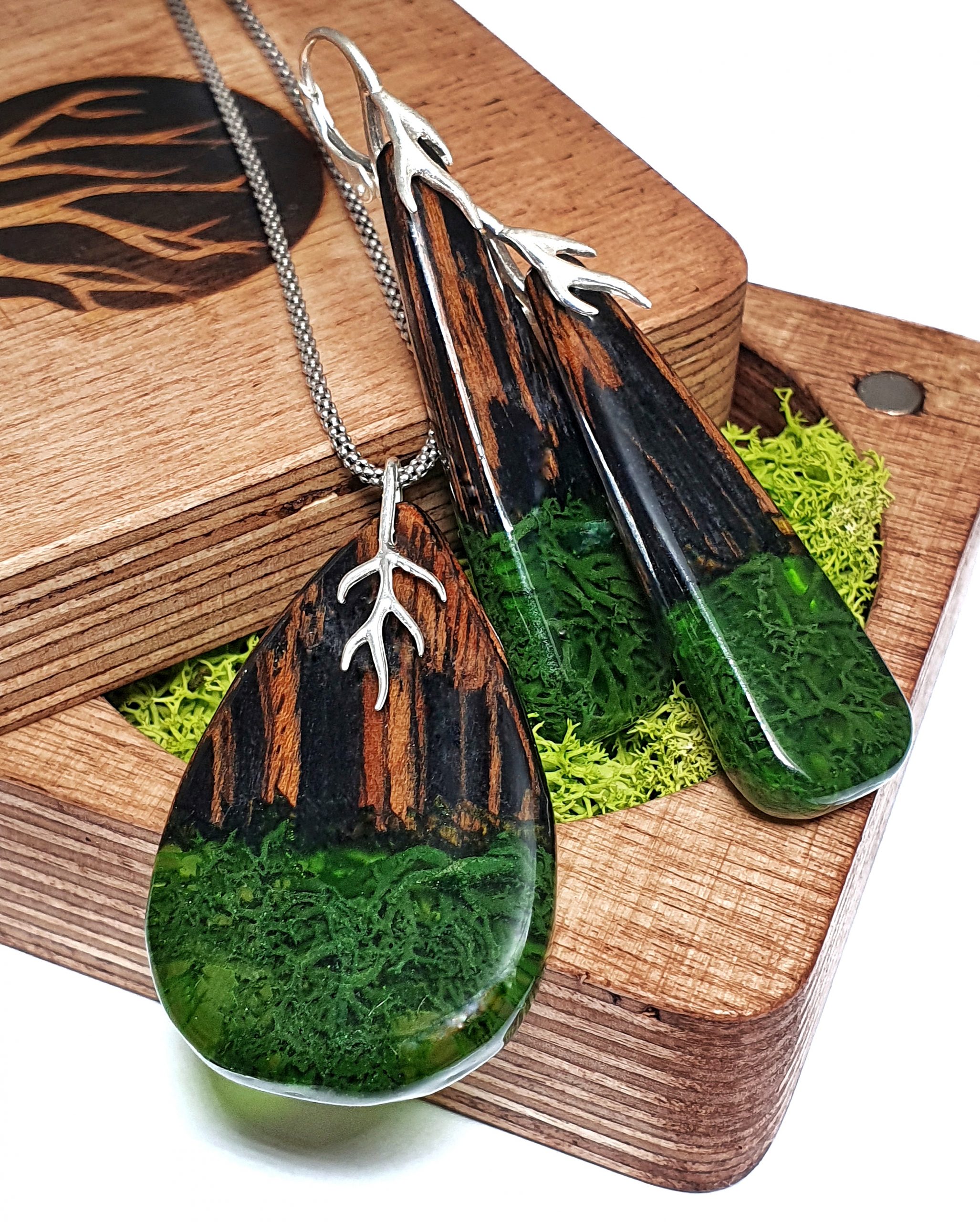 Drewniana biżuteria KorzaWood zawsze pakowana jest w drewniane pudełeczko, wykonane przez nas również własnoręcznie i wypełnione stabilizowanym mchem islandzkim – dzięki temu idealnie nadaje się na prezent.