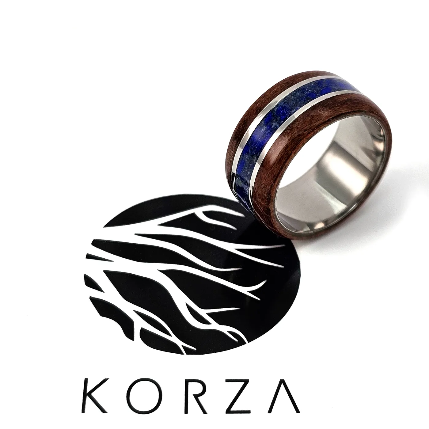 Ręcznie wykonany z trwałego tytanu, ciepłego drewna jabłoni indyjskiej oraz intensywnie niebieskiego lapis lazuli, przyciąga spojrzenia kontrastem materiałów i głębią koloru.